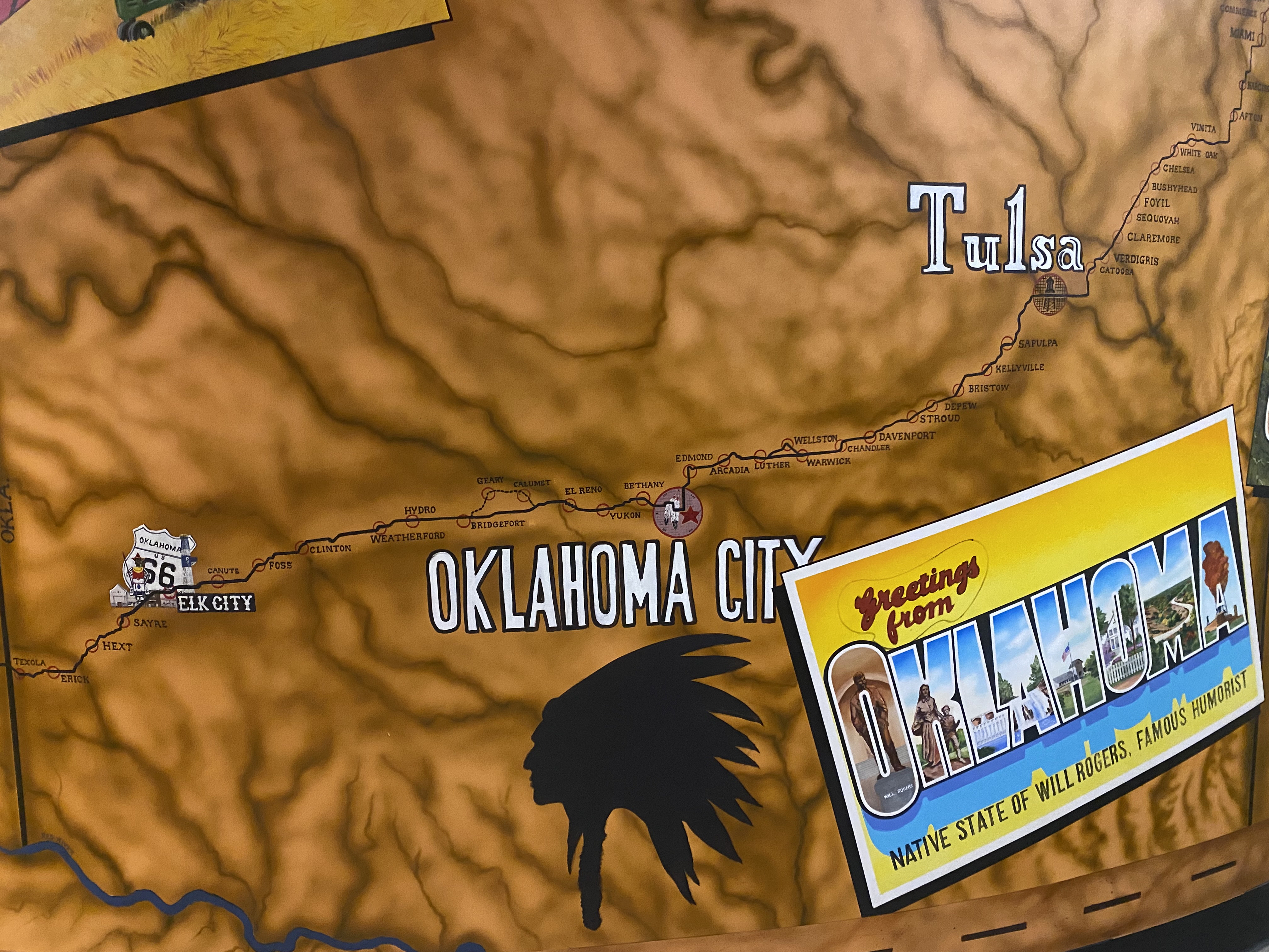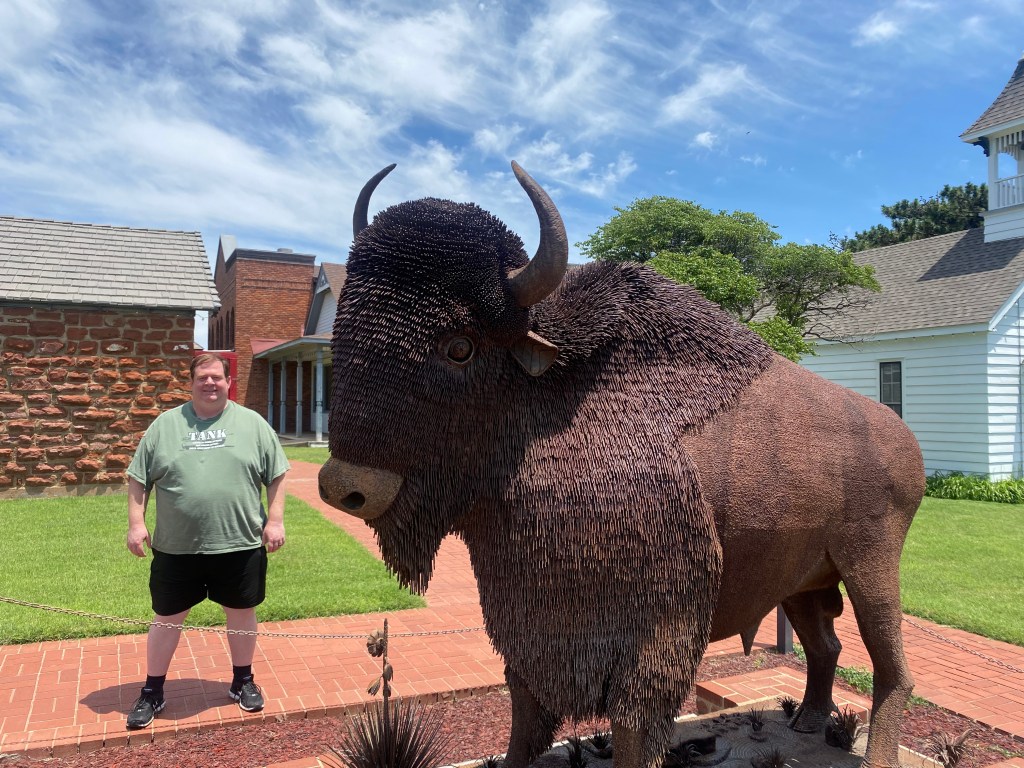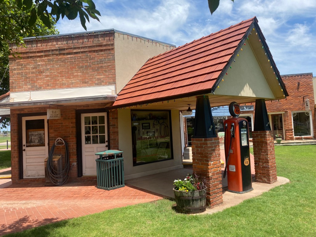 Before leaving OK, we headed over to part of Route 66 and went to the National Route 66 Museum in Elk City. In addition to the museum, they had a whole city block full of historical buildings that had been transplanted from places all along Route 66. It was cool to stroll through and fun to see families with kids running around imagining themselves in the pretend world. My kids would’ve loved this place when they were younger–I could almost envision little Lizzy running her brothers around to play school, pretend shop, visit the movie theater, etc. As a note, there seems to be hundreds of “official” Route 66 museums, and we even stumbled upon Mater at another location.