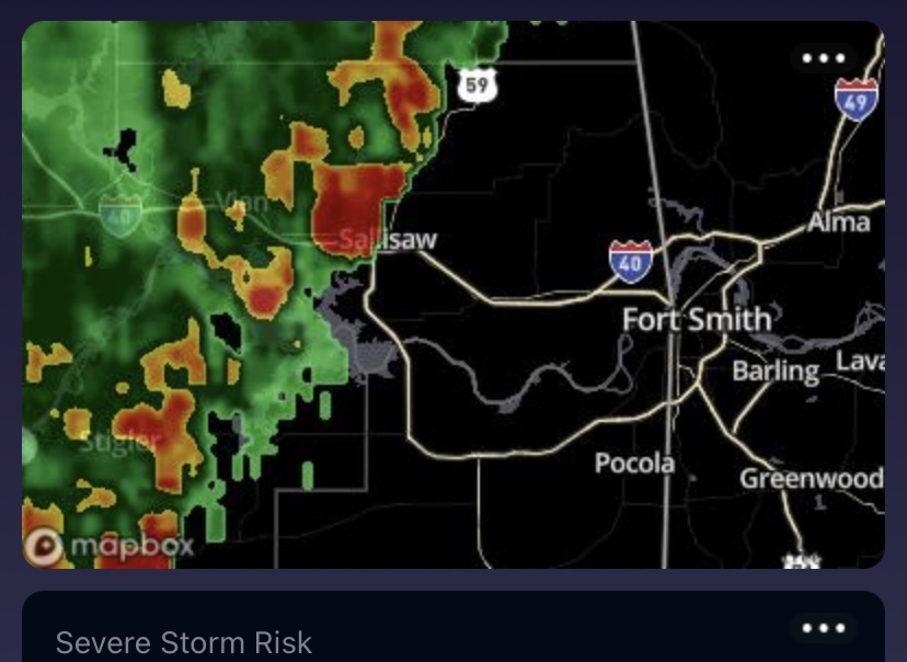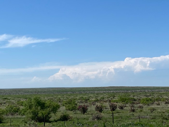 We headed out early with almost 650 miles ahead of us, departing AK and entering OK. Shortly after crossing the state line, we saw a disturbingly massive bank of dark clouds. Then my weather alert went off to warn us of a severe thunderstorm with straight-line winds, hail, and a chance of tornadoes. Luckily, we just had heavy rain, wind, and lightning but that was quite the storm for 8 in the morning. It was a good opportunity to sing the Oklahoma song lyrics, “Oklahoma, where the wind comes sweeping down the plain…”