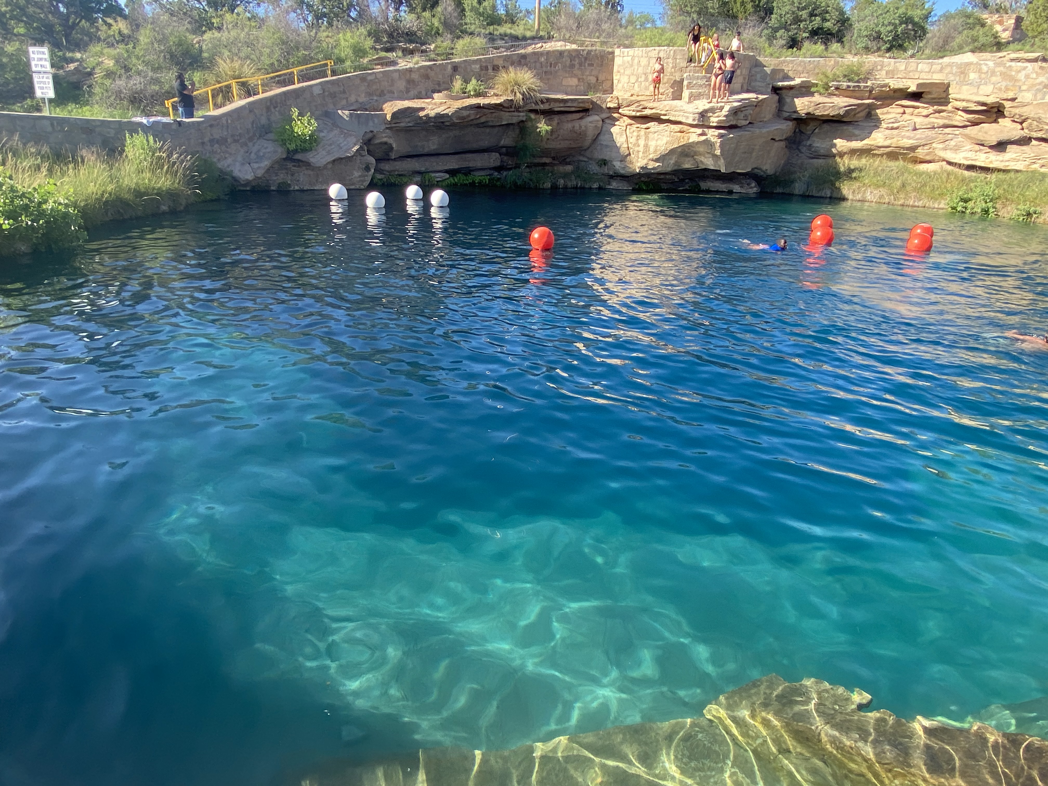 We had one final stop of the day–The Blue Hole. Apparently this dive locations is world-famous for its cave system at the bottom of the hole (going from 80 feet deep to nearly 200 feet deep). In addition to divers coming and going, there was a spot for cliff jumping in the hole and then plenty of room for swimming or snorkeling. It was beautiful, fun to snorkel, and extremely refreshing at a cool 61 degrees!
