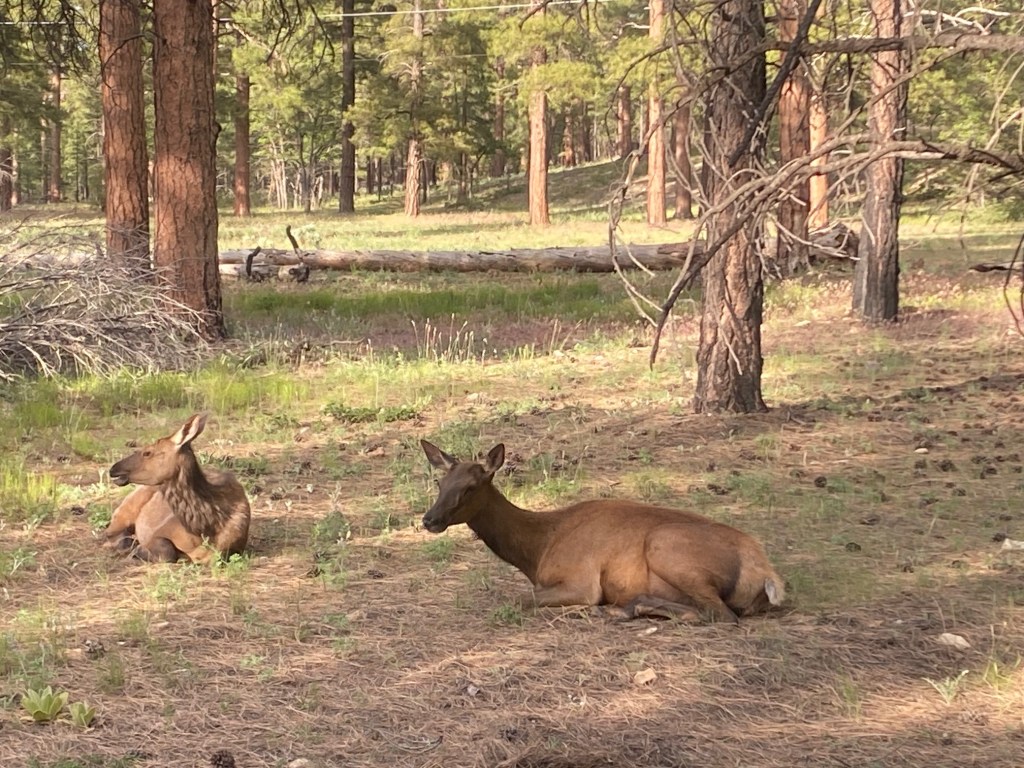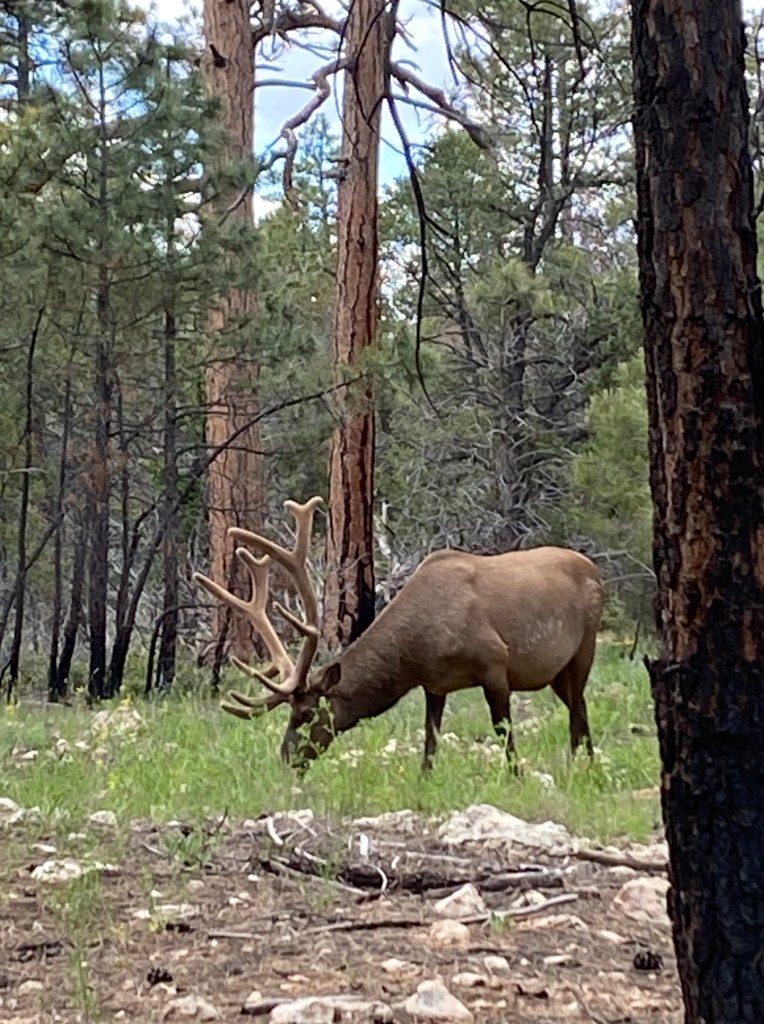 Fun side note to the canyon views: we saw some cool wildlife today. We heard clicking in the trees at the overlooks and finally spotted the source–cicadas. We saw a prairie dog that was so adorable that I failed to quickly pull out the phone and get a picture. We also saw elk several times along the road.