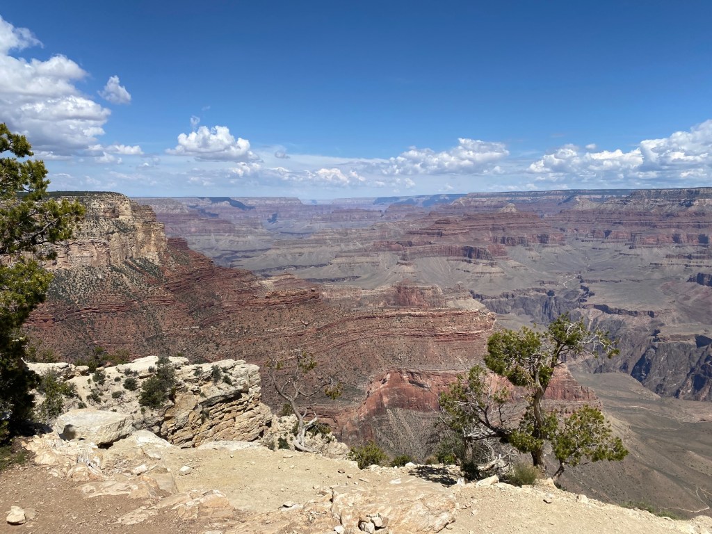 Today was the day for the main destination of our trip, and let me just say that the Grand Canyon did not disappoint. We rode the bus lines to a few overlook spots and, even though we saw part of the canyon last night, it was still overwhelmingly beautiful and awe-inspiring.