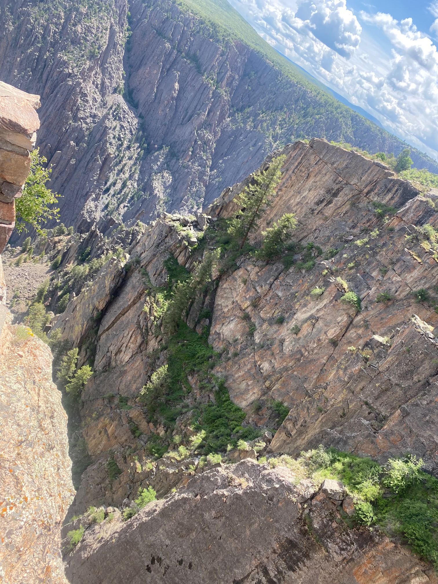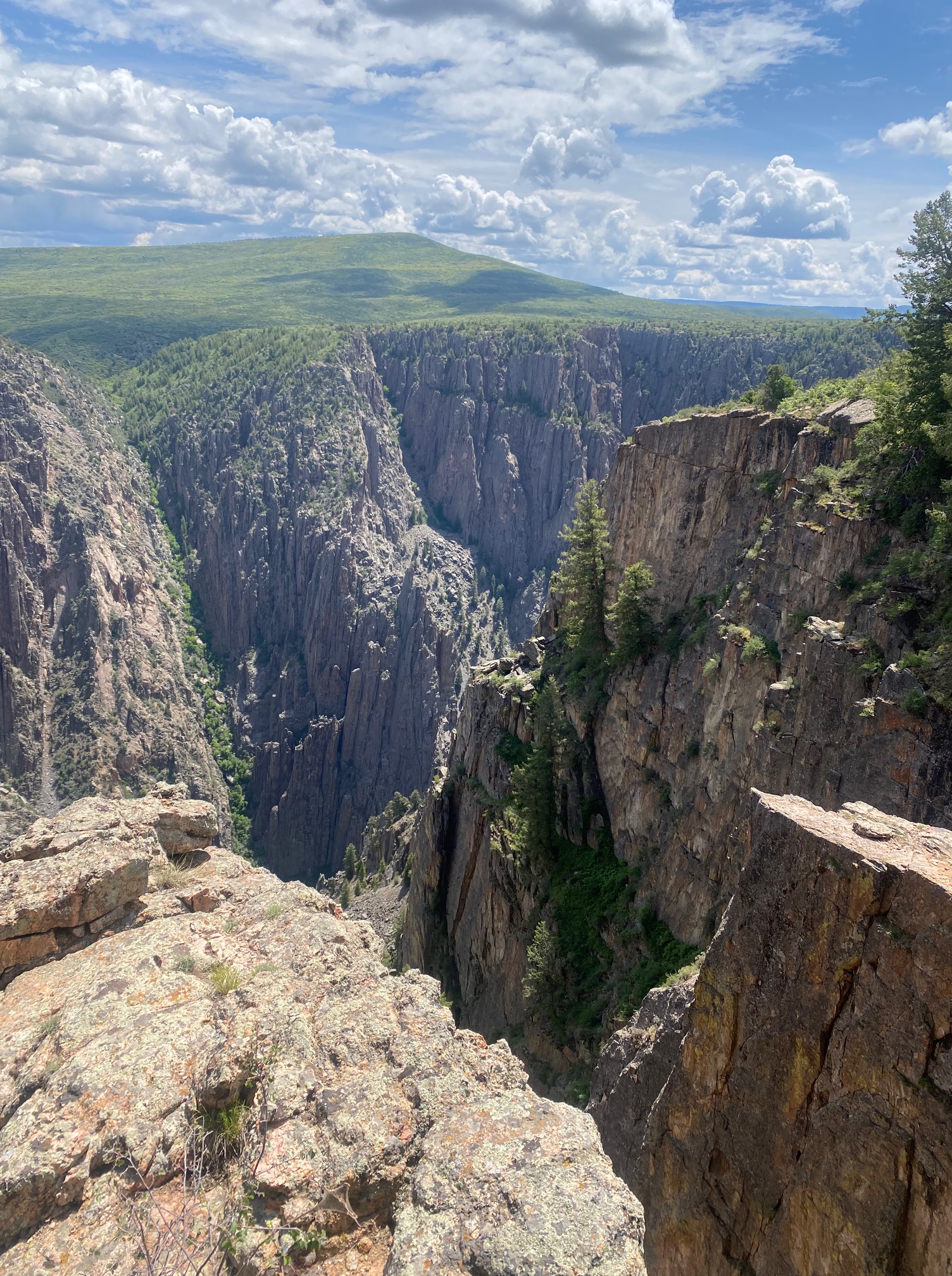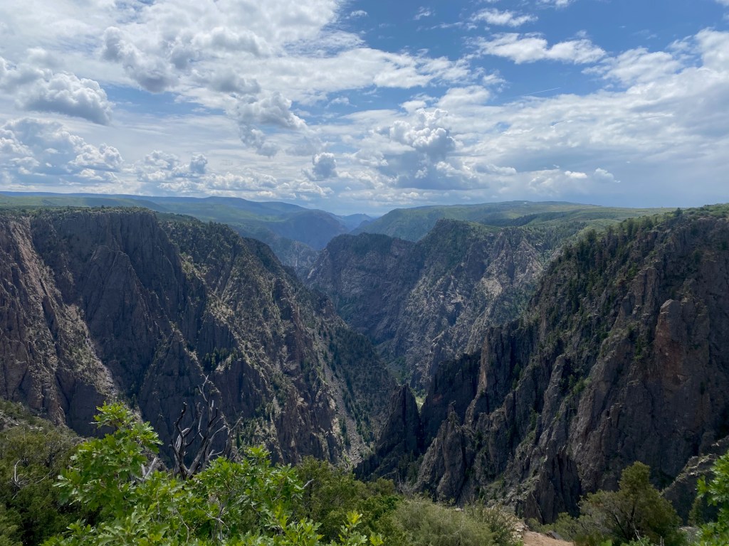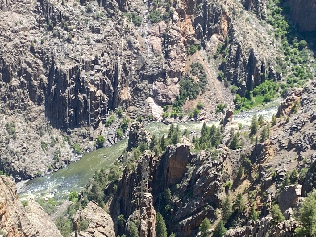 Our first stop was Black Canyon of the Gunnison. This was highly recommended by my dad (so I don’t ignore all his advice). The park elevation is over 8000 feet and the Gunnison River is over 1800 feet below the top rim. Despite that distance, you can hear the river roaring below. I can only imagine how loud the river is when hiking lower in the canyon. There were lots of birds flying around the canyon, from little purple dippers near the trail to peregrine falcons out patrolling the canyon gorge. I only wish we’d had more time here; I’d love to come back in the future to camp, hike, and see the stars.