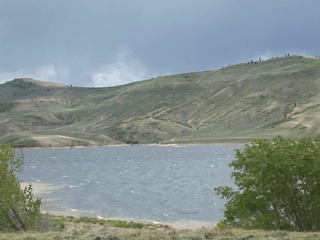 Part of the drive took us around Blue Mesa Reservoir, which looked almost like the ocean with the wind blowing the water into whitecaps and waves. We were going to have a picnic lunch in this beautiful stretch, but it was 45 degrees and the wind was howling. Rain was moving back in and blowing sideways. So, we went to McD’s in Gunnison for Happy Meals & Guardian of the Galaxy toys, but sadly we got the old swap-a-roo and ended up with a Scuttle from the new Little Mermaid. Hmph