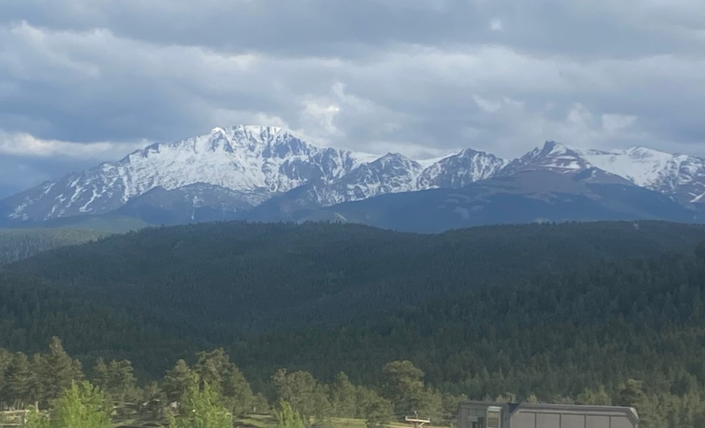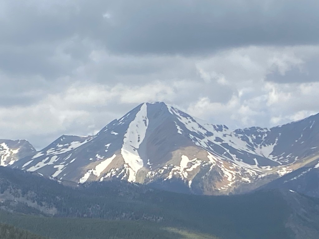 The drive along Highway 50, aka the Loneliest Road, was beautiful from Black Canyon onward. I was so mesmerized that I didn’t really take many pictures and just stared out the window as the miles ticked by. After the drive around the expansive reservoir, we went over the continental divide and around Monarch Mountain, in all it’s snow-dotted beauty at 11,300 feet. As we approached the Rockies, we turned on Co 285, which ran right between the snowy Sawatch mountain range and the Rocky mountain range. We were surrounded by majestic mountains as far as the eyes could see, before crossing the Rockies.