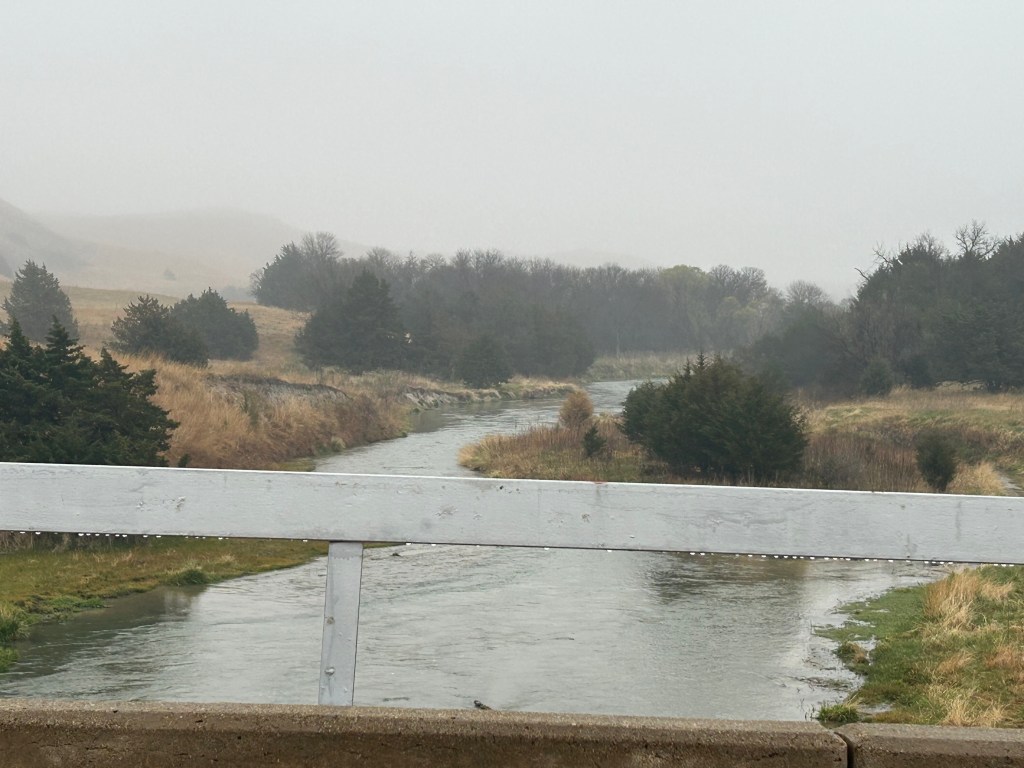 We awoke to a cold and gray day in Nebraska. The weather forecast at breakfast emphasized several rounds of snow moving through the region throughout the day. We bundled up and headed north. The view was initially a flat, river valley. Nebraska had way more rivers and creeks than I would’ve imagined.