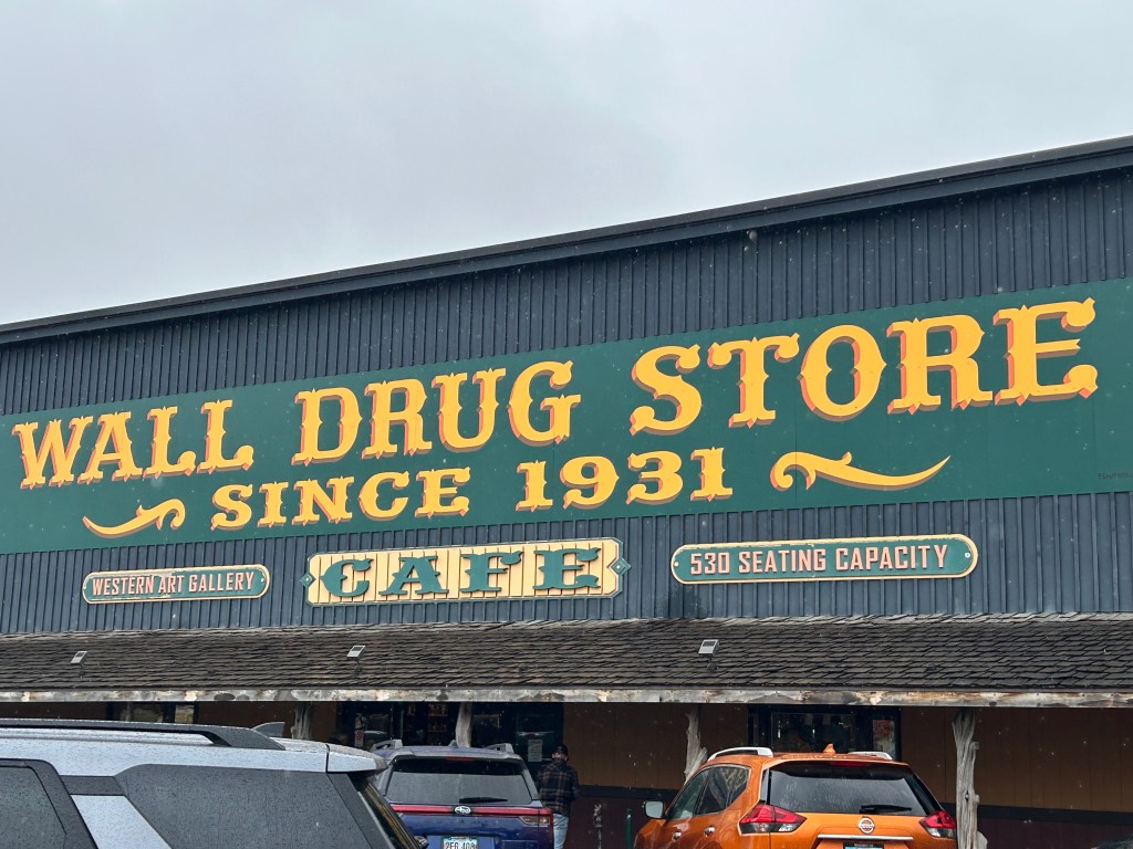 As we departed the Badlands, it just happened to be lunchtime, and we just happened to be near Wall Drug. So off we went to check out another tourist trap. The whole town of Wall leaned heavily on the draw of Wall Drug and the place was surrounded by every possible shop you could imagine. We didn’t pan for gold or go gem mining or even buy boots. We did have a delicious lunch and amazing cherry pie. Of course, I also had to enjoy some free ice water. If you know, you know. ;)